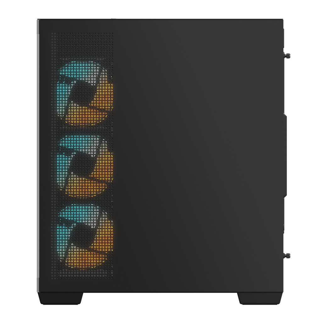 前面板與側面板採用4mm鋼化玻璃全景打造,270°視角完整展現整個艙內精緻組裝,讓玩家輕鬆展示內裝配置,隨時欣賞親自打造的PC風格。雙面玻璃側板皆採用無鑽孔設計,不僅有效降低玻璃損壞風險還讓整機視覺上更佳美觀。