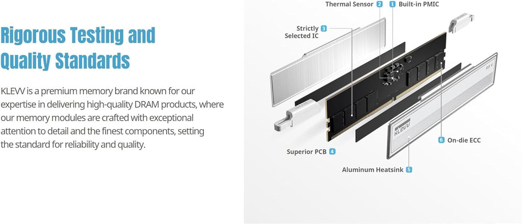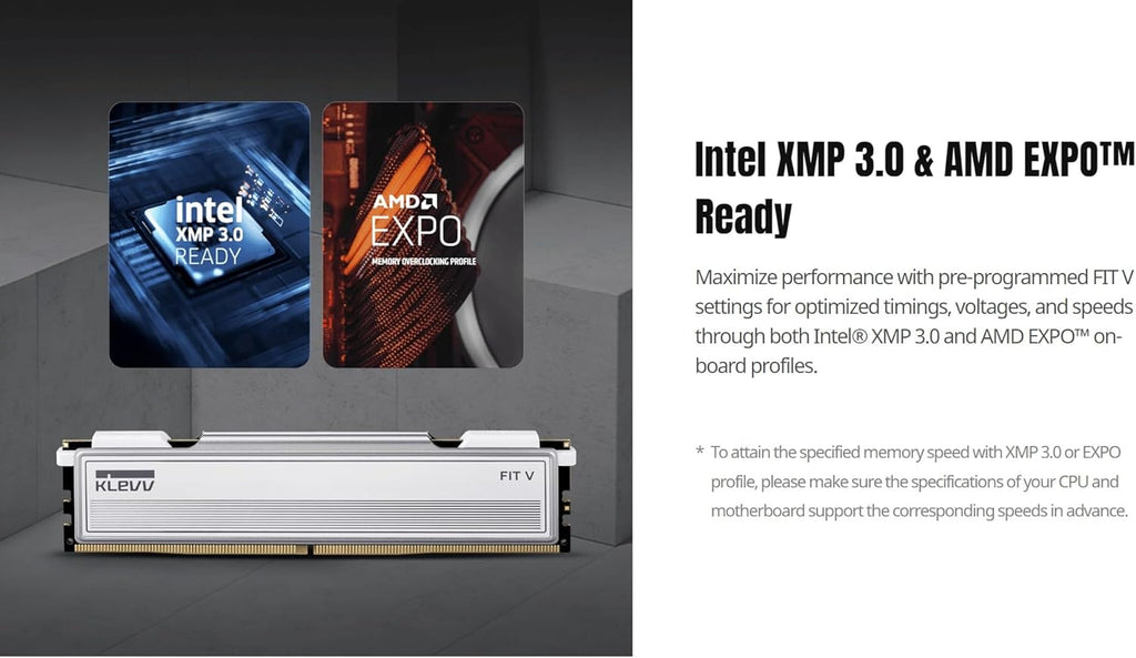 KLEVV Fit V DDR5 16GB (1x16GB) 6000MHz CL32 1.35V Gaming Desktop Memory SK Hynix Chip XMP 3.0 / AMD Expo Ready KD5AGU880-60A320Q