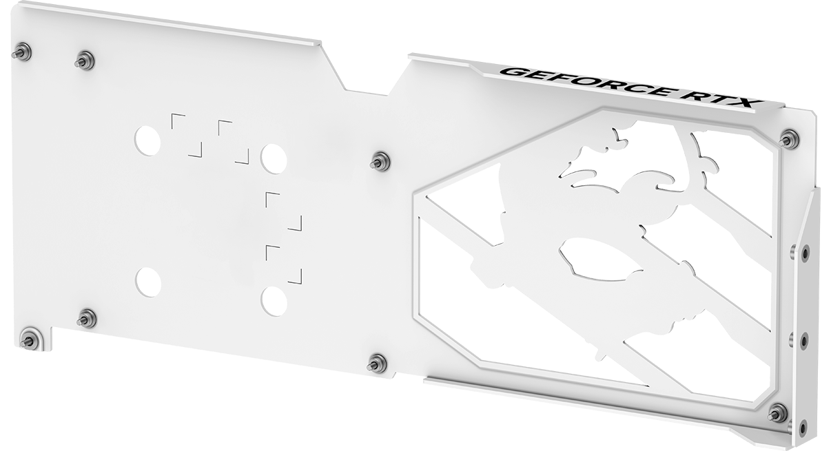 • Nickel-plated Copper Baseplate: Heat from the GPU and memory is swiftly captured by a nickel-plated copper baseplate and transferred.