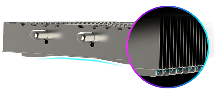 • Air Antegrade Fin 2.0: The fins feature a V-shaped cutout and a high-low design at the airflow passthrough to optimize flow efficiency.