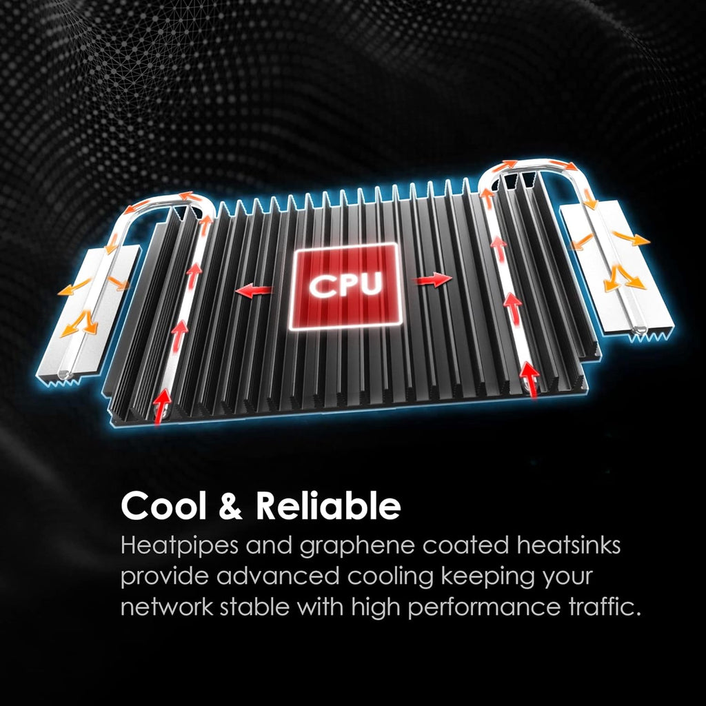 The RadiX AX6600 premium cooling design with graphene-coated heatsinks and heat pipes ensures the best performance even in heavy loads.