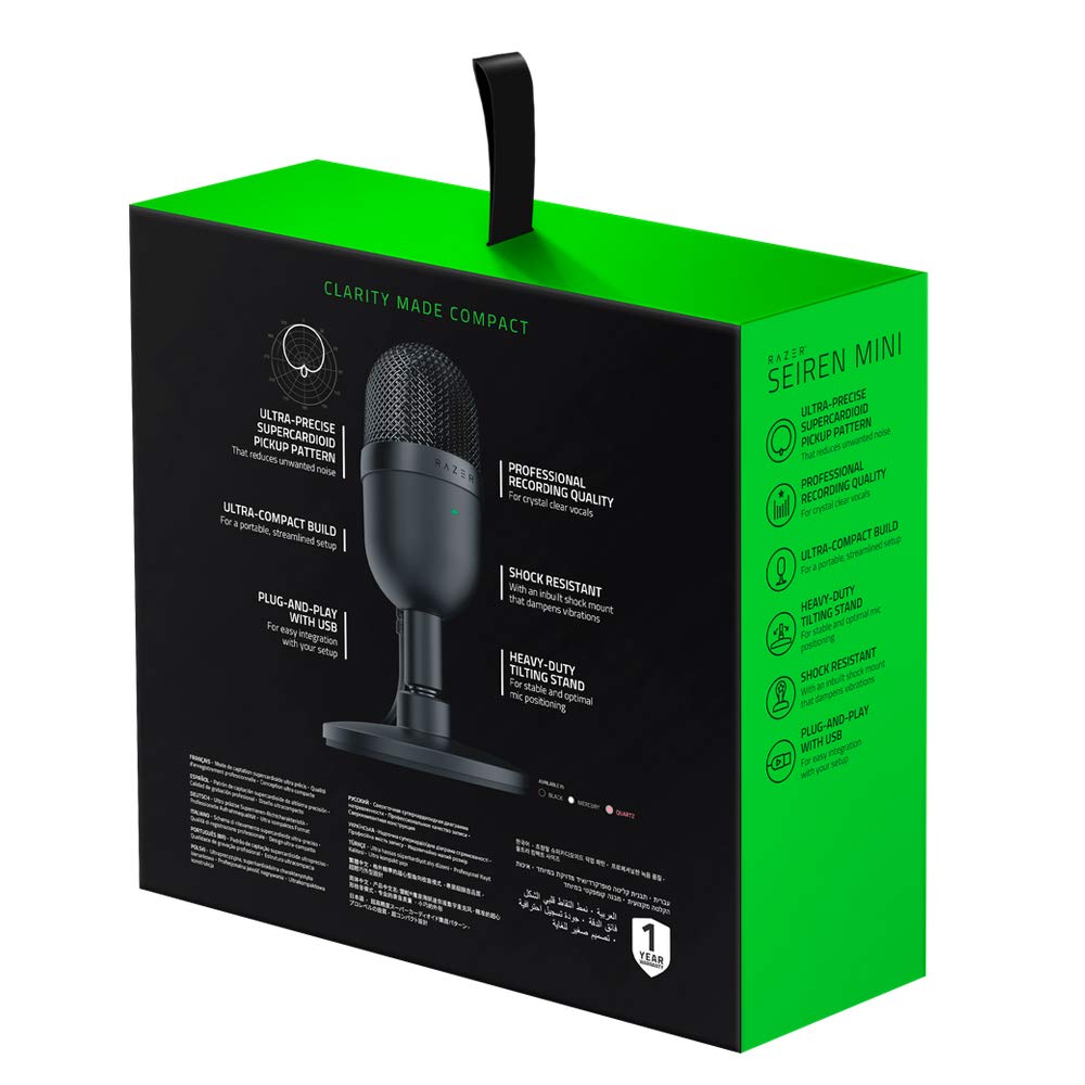 - Ultra-Precise Supercardioid Pickup Pattern: The Razer Seiren Mini is tuned with a tighter pickup angle, so it can focus on your voice while ensuring that background noises like typing and mousUltra-Precise Supercardioid Pickup Pattern: The Razer Seiren Mini is tuned with a tighter pickup angle, so it can focus on your voice while ensuring that background noises like typing and mouse clicks don’t get picked upe clicks don’t get picked up