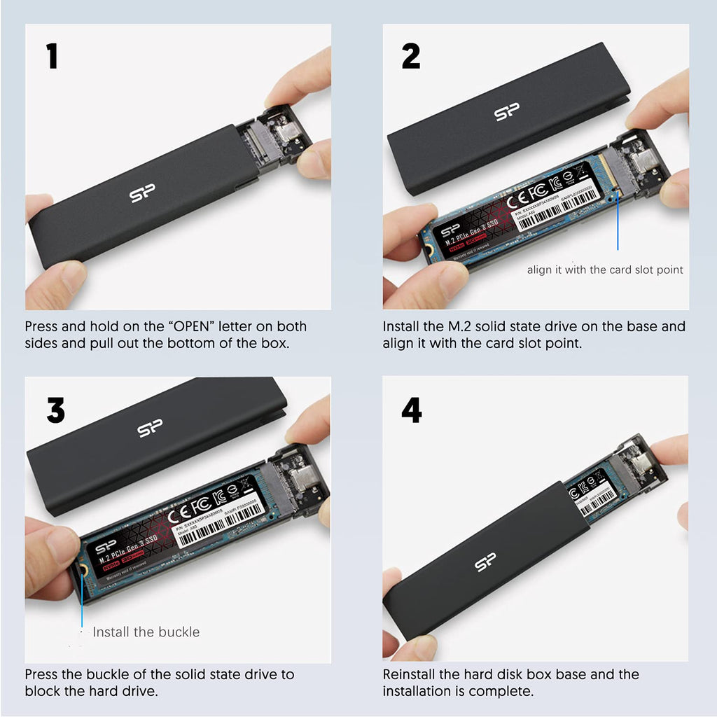 The aluminum body is durable enough to protect your SSD, yet light enough to toss in your bag and hardly notice it, making it the perfect travel companion. It also provides superior heat dissipation, which is further enhanced by its slide design, allowing excess heat to escape when the cover is removed.