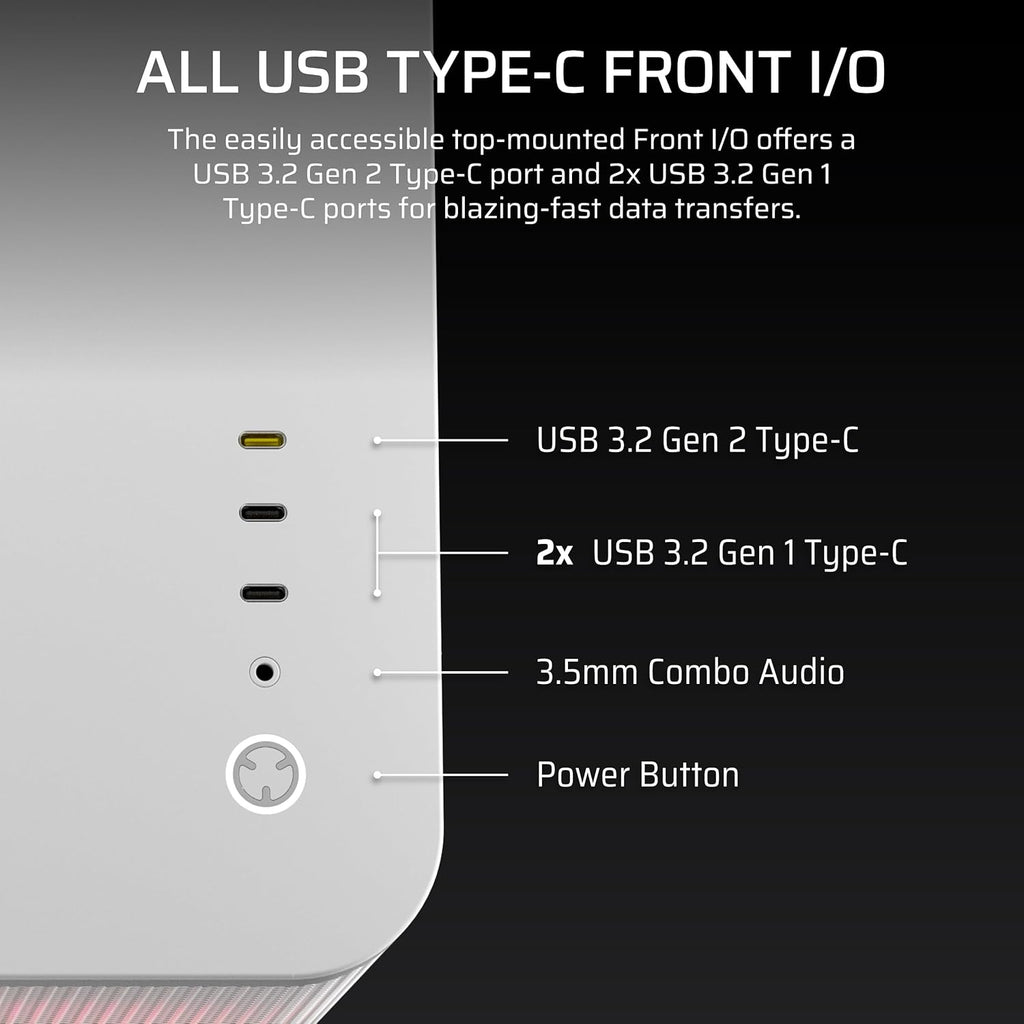 | Case Front IO | (1x) USB 3.2 Gen 2x2 Type-C, (2x) USB 3.2 Gen 1 Type-C, (1x) Audio in/out |