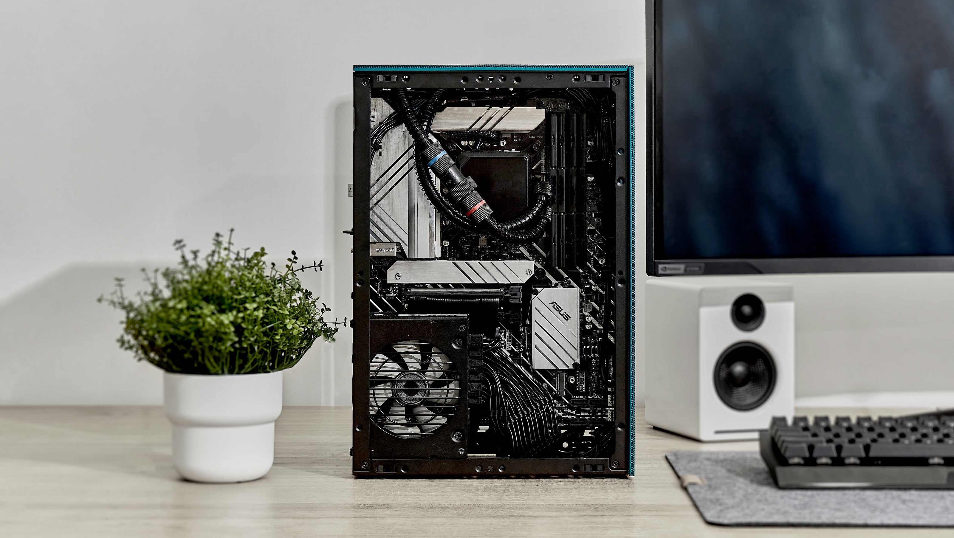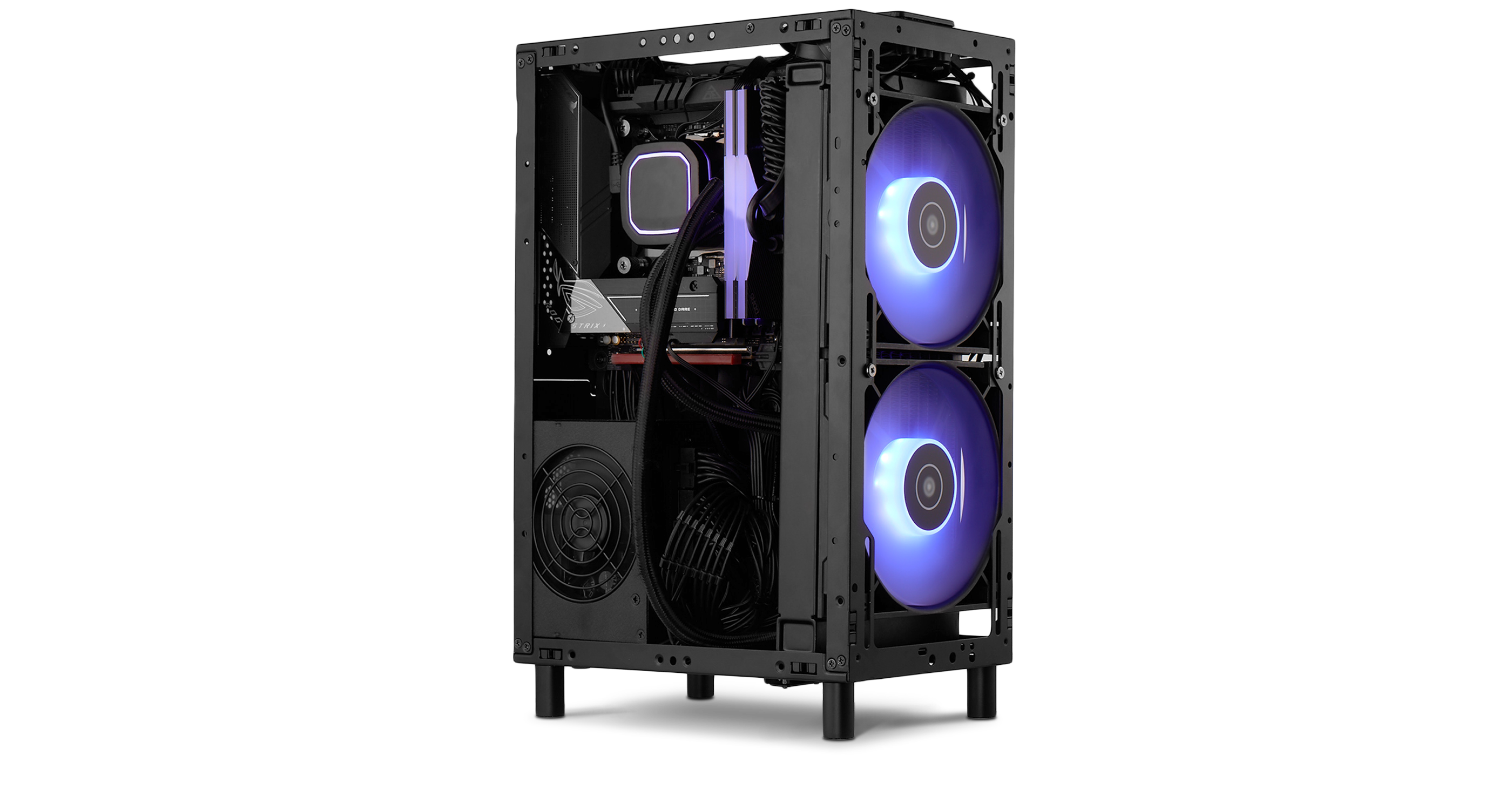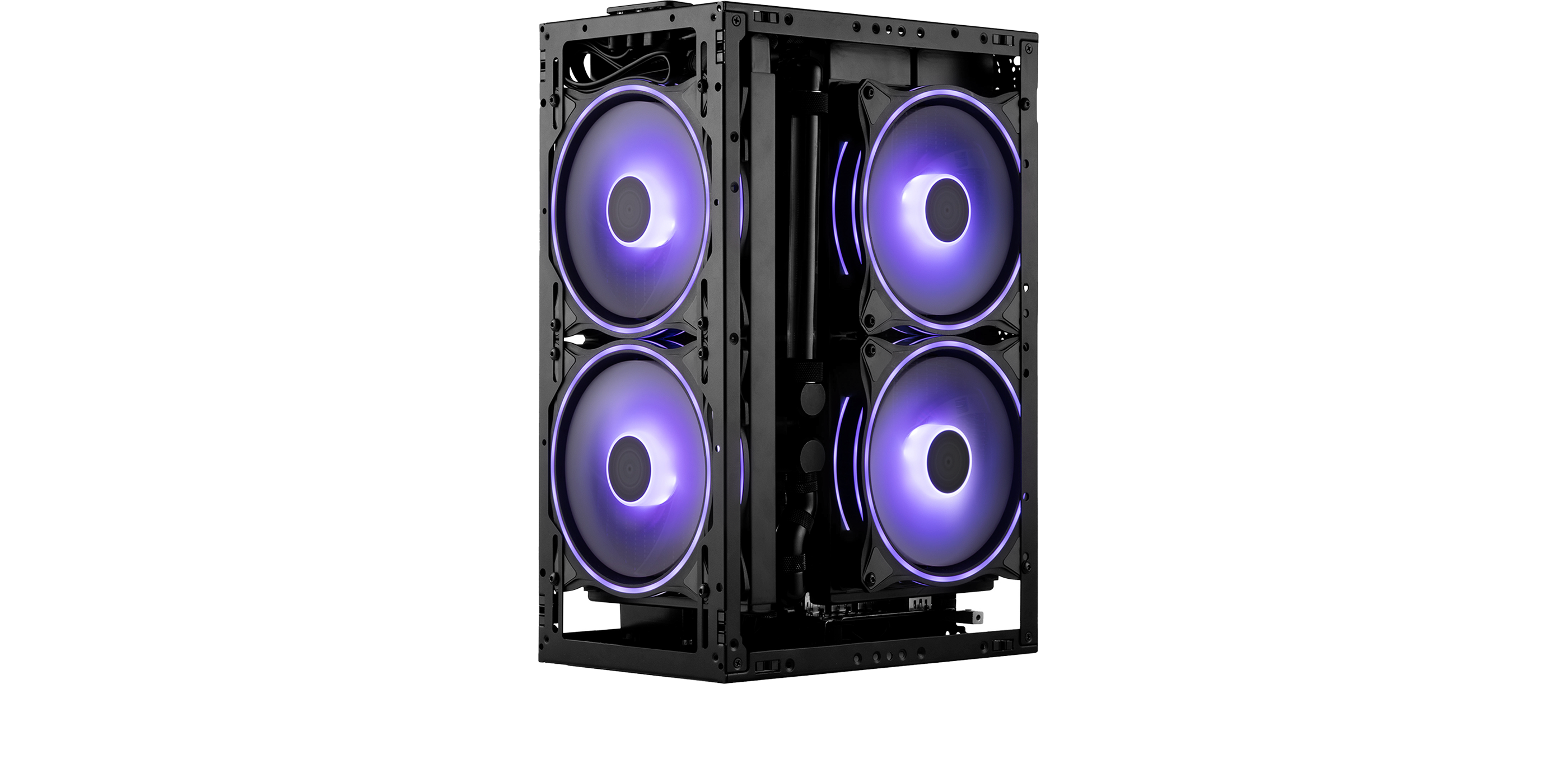 Featuring a dual radiator custom loop water cooling design and assuring with a ddc pump simultaneously