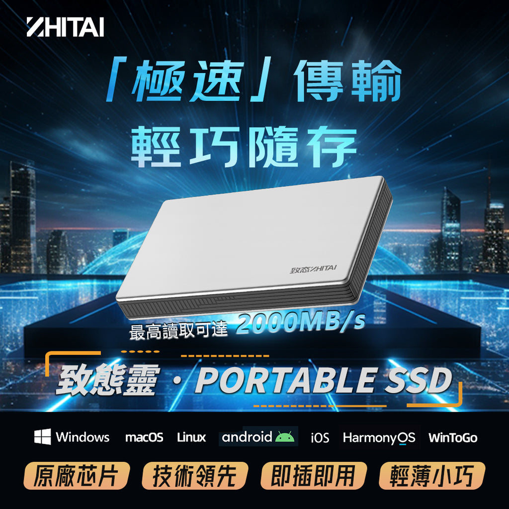 註解: (1)隨機附贈數據線採用USB 3.2 Gen 2×2介面,向下相容USB 3.2 Gen 2,USB 3.2 Gen 1,USB 2.0等介面。 (2)性能因主機配置而異,達到2000MB/s的最大順序讀取/寫入速度,主機設備介面及USB連接線均須支援USB 3.2 Gen 2×2協定,且需啟動UASP模式。 測試系統配置:華碩TUF GAMING B760M-PLUS WIFI D4重炮手主機板,Intel酷睿i5 12400處理器,Windows 10 64bit系統,DDR4 16GB記憶體,NVMe M.2 500G硬碟 (3)因不同設備存在差異,可能出現與移動固態硬碟不相容的情況; 部分作業系統使用前需要格式化移動硬碟。 (4)致態天樞大師、致態加密軟體為電腦端軟體,支援Windows7、 Windows8、 Windows10、 Windows11系統; 移動固態硬碟內置AESTool.exe致態加密軟體,需要使用者自行設置密碼進行加密以及解密操作,詳細說明可見AESTool內置使用指導。 加密軟體也可到致態官網進行下載安裝。 官網下載位址:https://www.ymtc.com/cn/techsupport.html 致態備份管家為移動端軟體,支援安卓11及以上系統、鴻蒙4.19及以上內核版本系統,暫不支援iOS系統。 (5)由於使用了不同的測量標準,您的計算機可能會顯示出不同的容量值,此為技術標準不同導致; 使用者容量通常計算方法:1TB=1000GB,1GB=1000MB,1MB=1000KB,1KB=1000B; 電腦操作系統容量計算通常以1024為進位:1TB=1024GB,1GB=1024MB,1MB=1024KB,1KB=1024B。