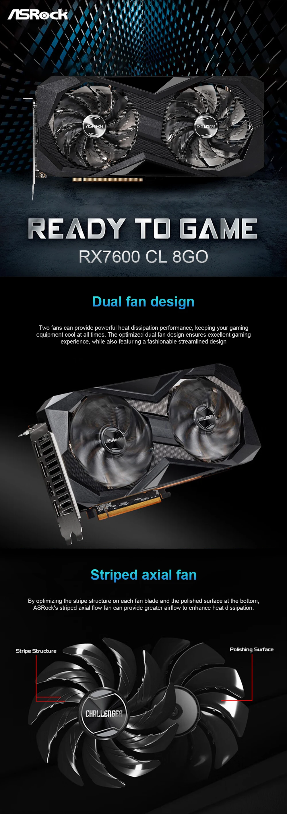 ASRock AMD Radeon RX 7600 Challenger 8GB OC Graphics Card RX7600 8GB GDDR6 128-bit Desktop Computer Gaming Video Card for PC
