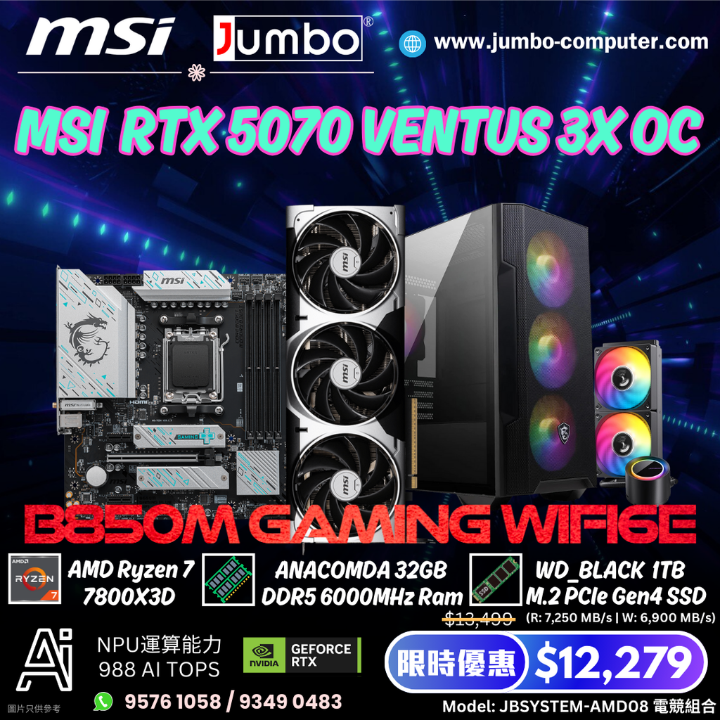 【Display Card】顯示卡 - MSI GeForce RTX 5070 VENTUS 3X OC 12GB GDDR7 顯示卡
