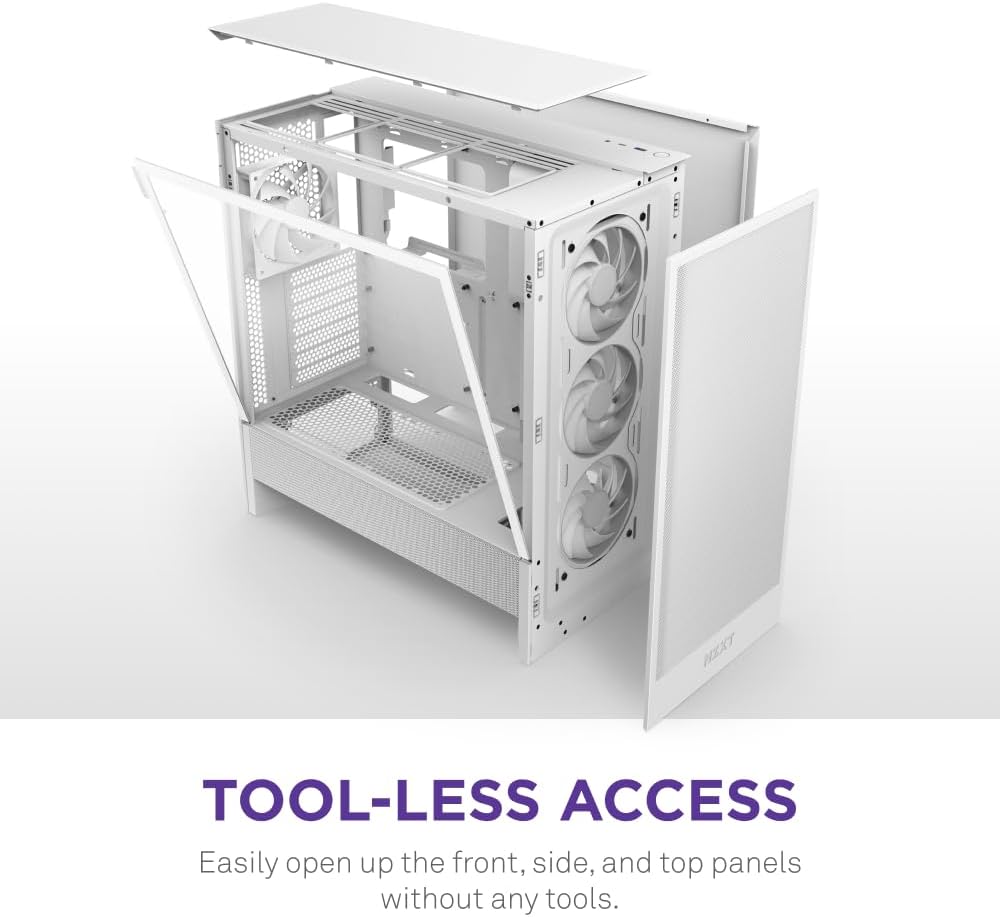 The H5 Flow RGB boosts airflow and GPU cooling with its perforated PSU shroud, mesh panels, and large radiator support—all in a compact mid-tower form factor.